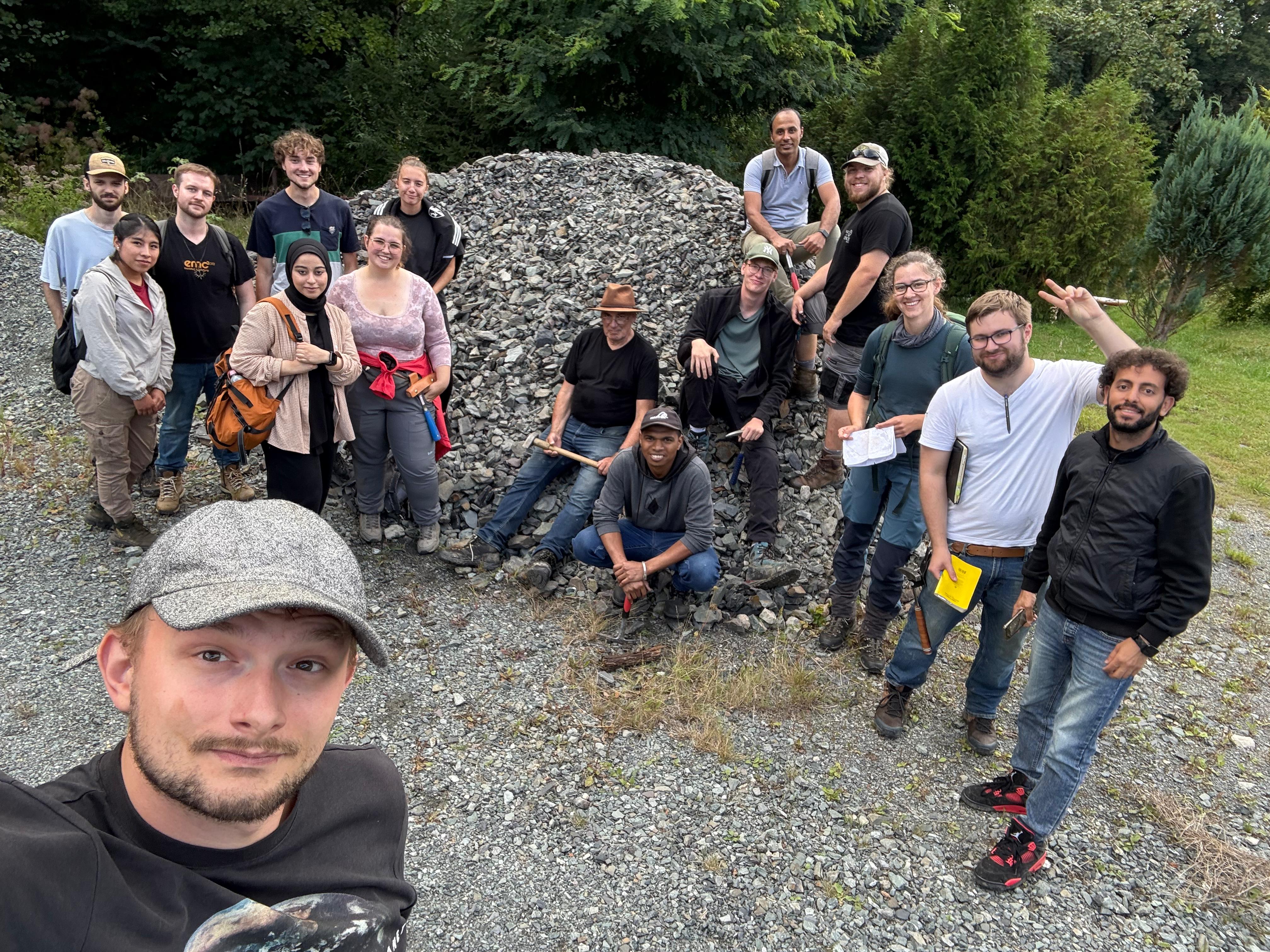 A terepgyakorlaton résztvevő miskolci és német diákok. Középen Dr. Rainer Petschick.